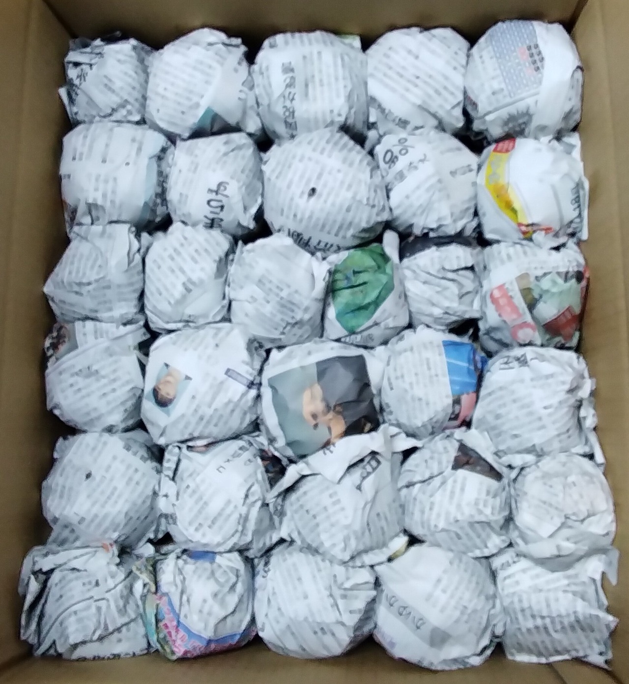 大きさがまちまちなので一個ずつ新聞で包んで梱包し、りんご専用箱でお送りします。(2段詰め)